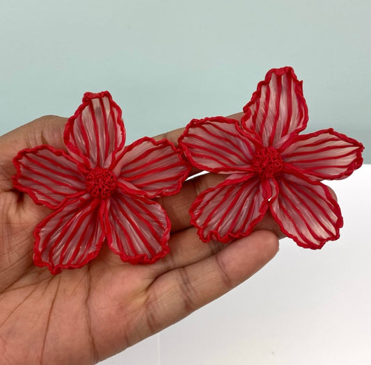 Small Apple Red & Soft Blush Striped Translucent Bloom Stud (Ready to ship)